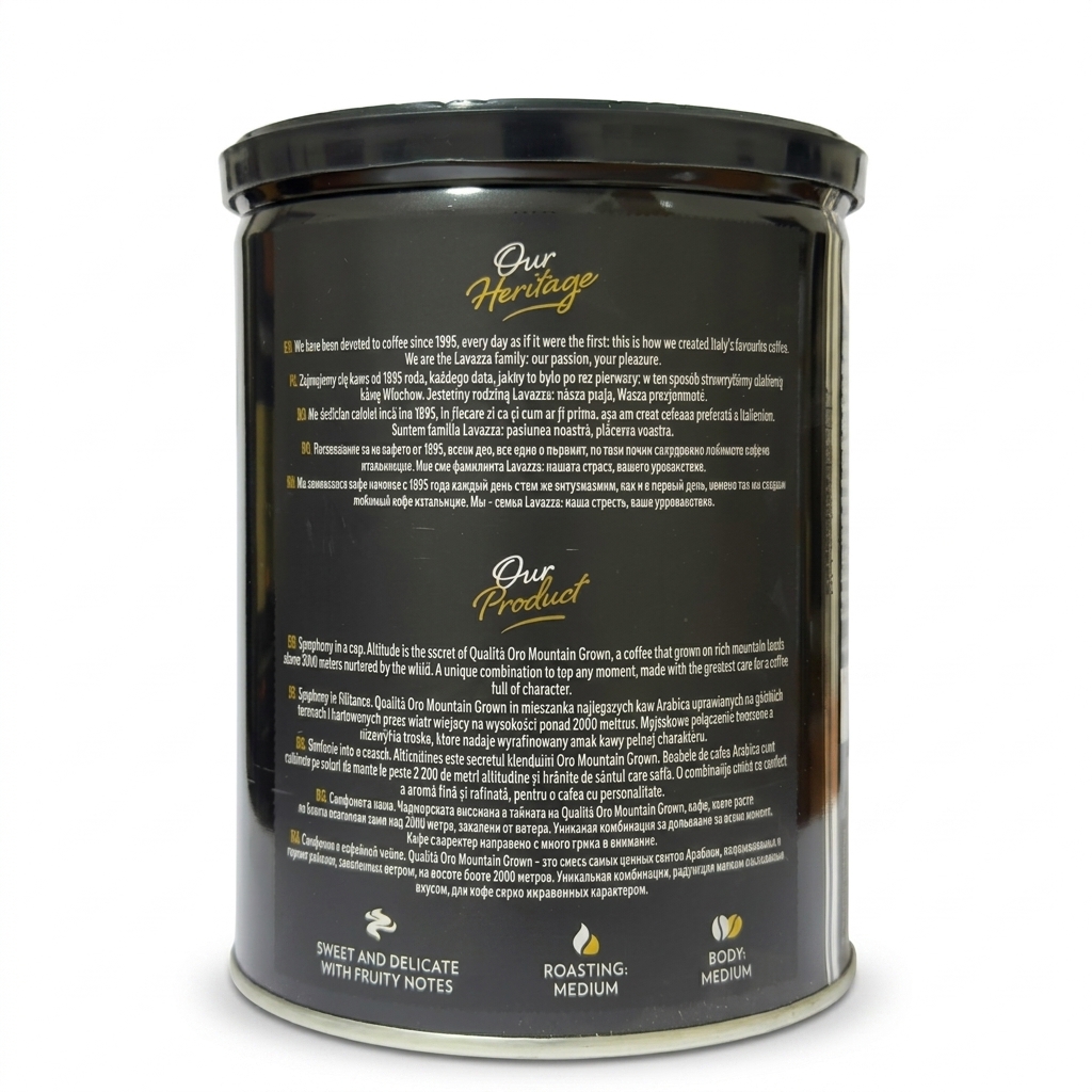 Enjoy a premium Italian coffee experience with Lavazza Qualità Oro Ground Coffee, a carefully crafted blend made from 100% Arabica beans sourced from high-altitude regions. This coffee delivers a smooth, well-balanced flavor with aromatic notes and a refined, slightly sweet finish.