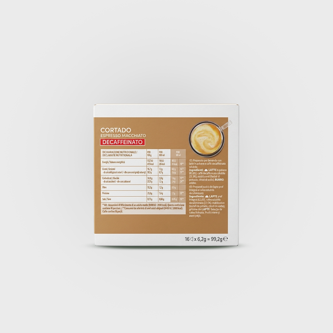 استمتع بطعم الإسبريسو الغني مع لمسة حليب ناعمة بدون كافيين مع Nescafé Dolce Gusto Cortado Decaffeinato.